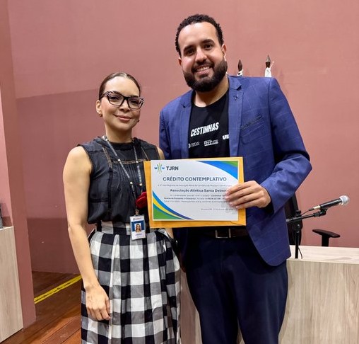 Representando o Projeto Cestinhas, Lucas Negreiros recebe o incentivo concreto do TJRN (Foto: Divulgação)