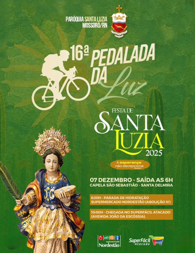 A Pedalada da Luz é um momento de união, devoção e celebração da fé de Santa Luzia, reunindo famílias, amigos e grupos de ciclistas de toda Mossoró.